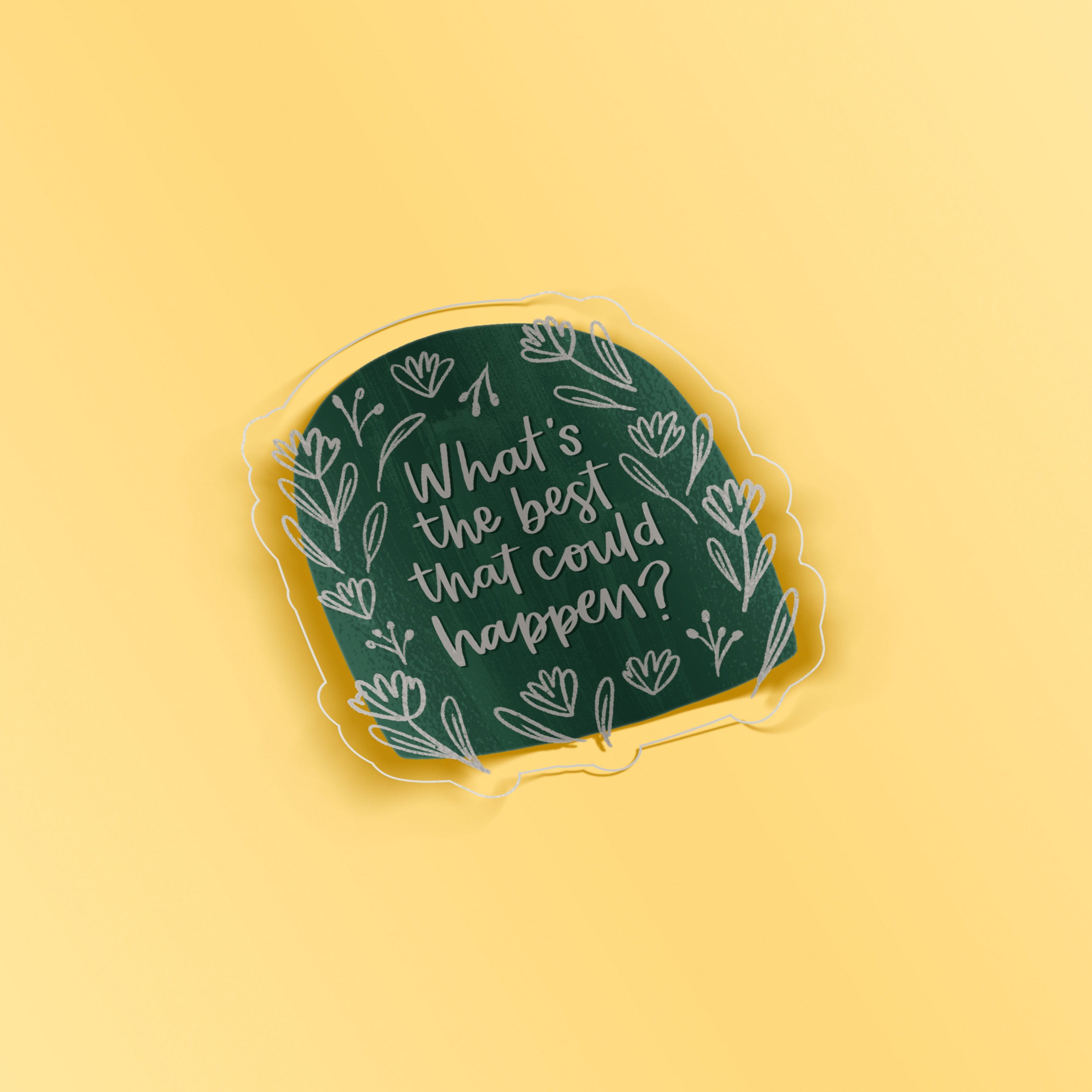 What's The Best That Could Happen Clear Sticker What's The Best That Could Happen Clear Sticker Product form$3.75 Shipped today? Order within: Mar 01, 2026 17:00:00 -0800 Quantity Add to cart This item is a recurring or deferred purchase. By continuing, I agree to the cancellation policy and authorize you to charge my payment method at the prices, frequency and dates listed on this page until my order is fulfilled or I cancel, if permitted. Guaranteed secure & safe checkout. Free shipping on all orders above $35 Free pickup in our shop(s)